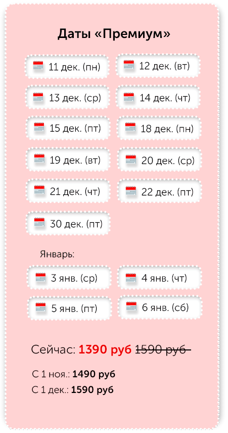 Вы вносите предоплату за группу всего 5000 руб, чтобы закрепить за собой дату