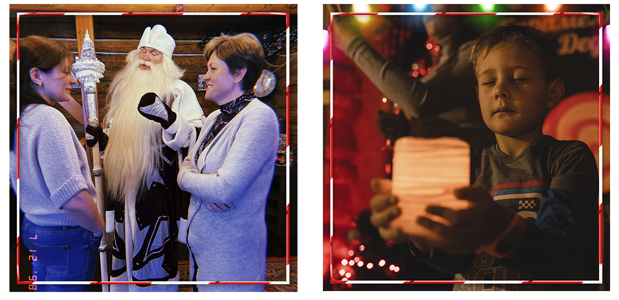 Иногда наши аниматоры и Дед Мороз даже водят хороводы с родителями, фотографируются у фото-зоны и читают стишки на стульчике :) Конечно, это всё - по желанию.