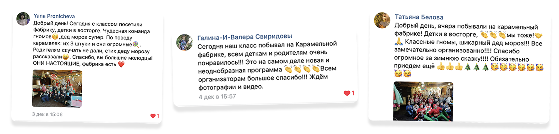 Здесь показаны лишь некоторые. В нашей группе не менее 100 видео-отзывов с прошлого года!